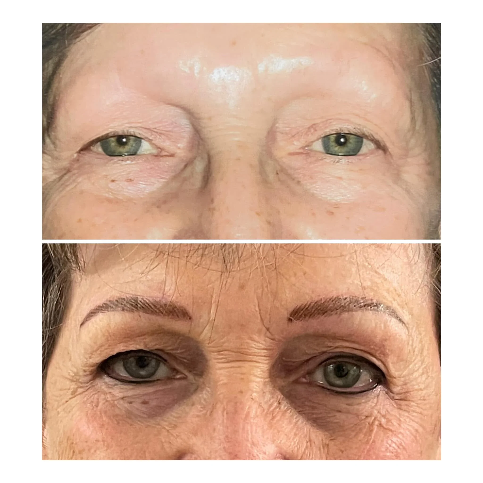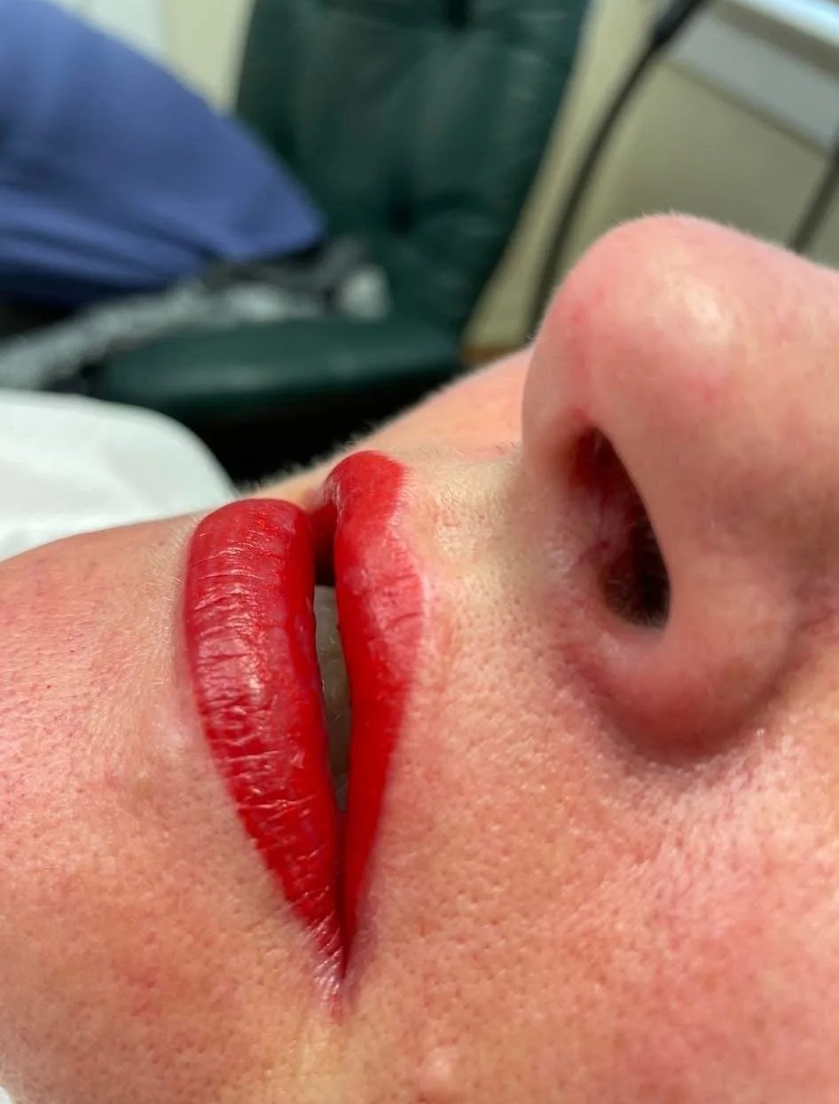 The “after” photos were taken immediately after we completed the procedure. Things will be brighter and may be slightly swollen and red from being worked on. The final color will appear more natural after healing is complete. This change is due to the outer layer of skin, otherwise known as the epidermis, healing over the pigment, softening and lightening the finial color.
